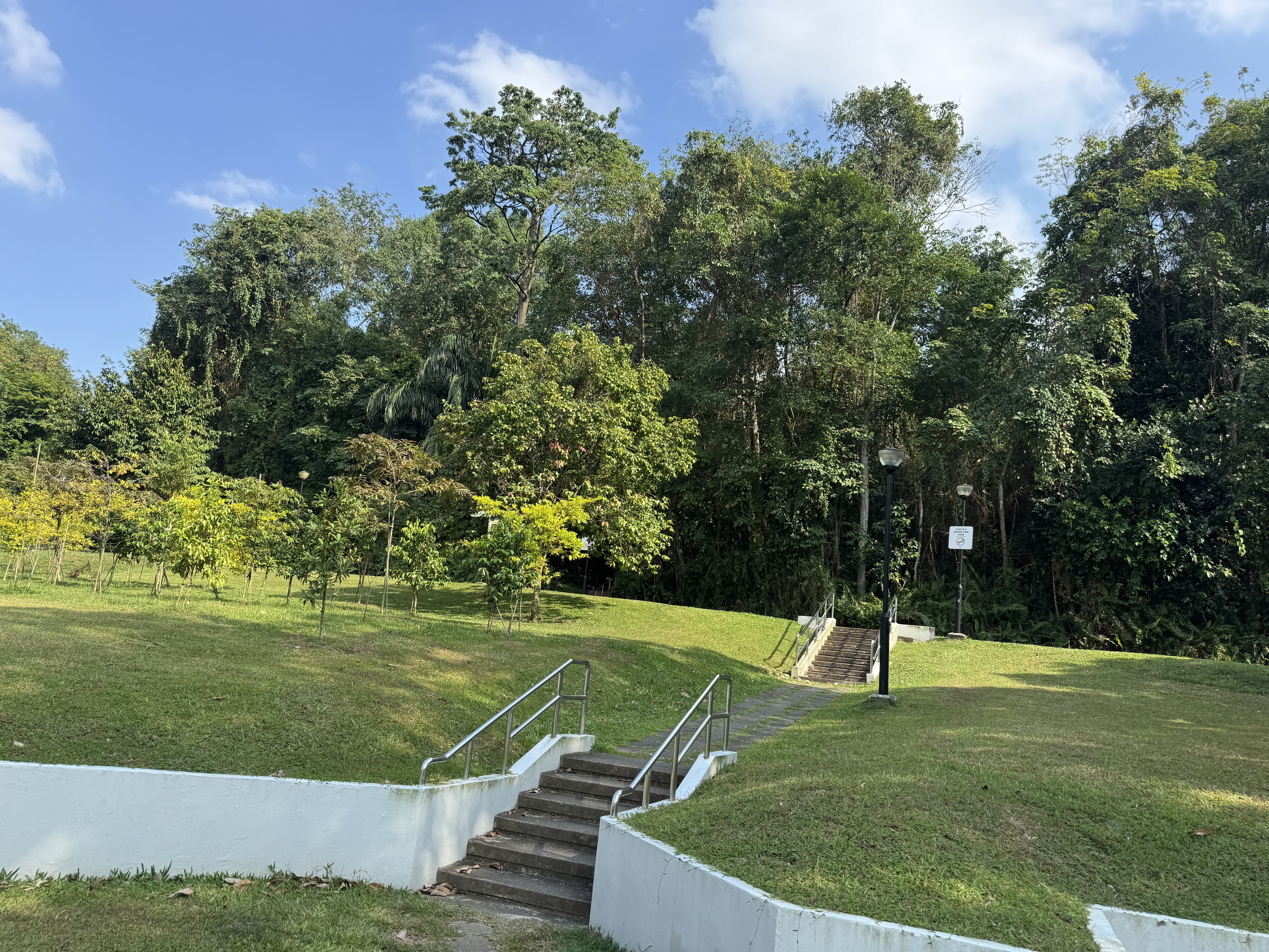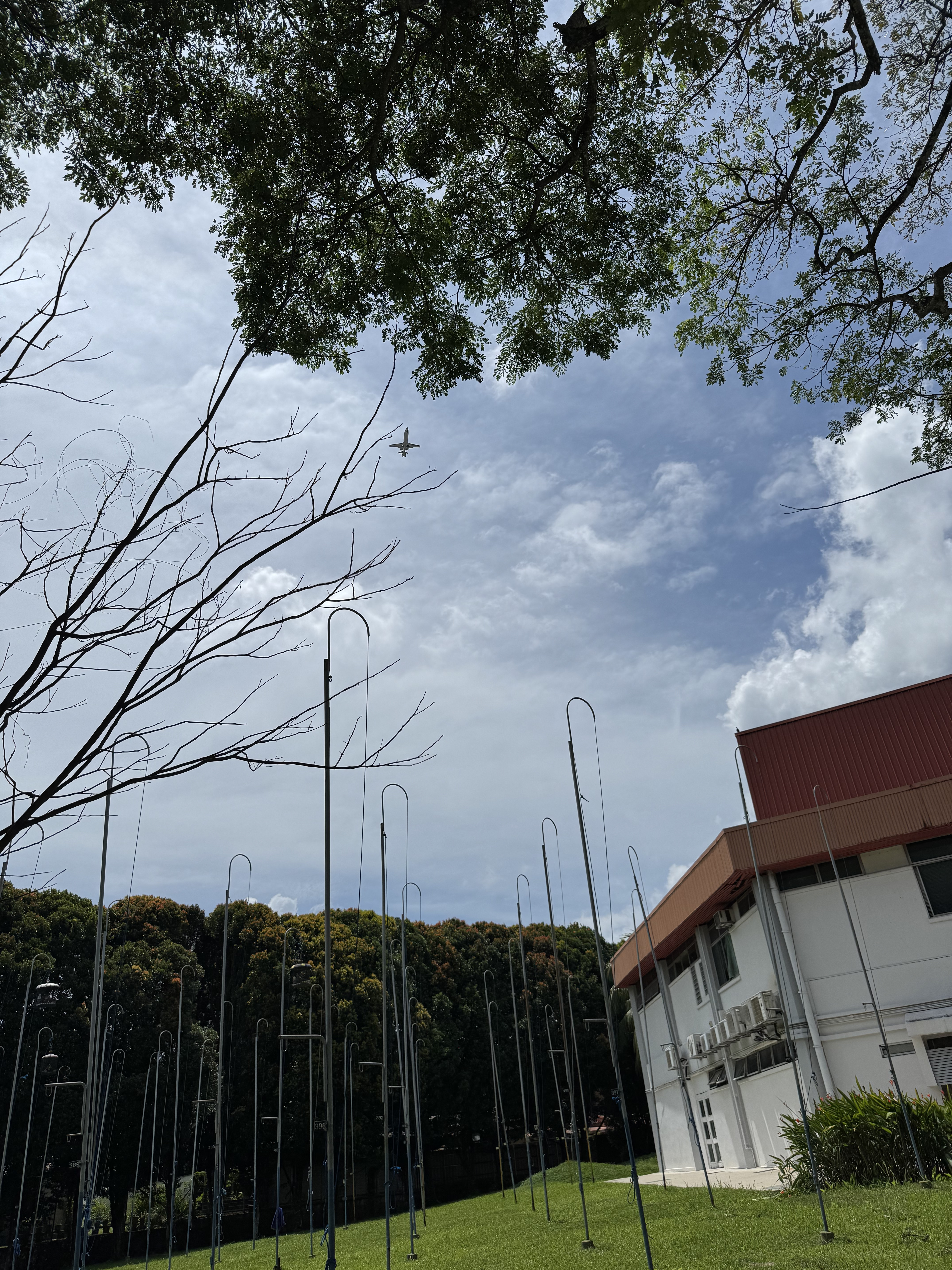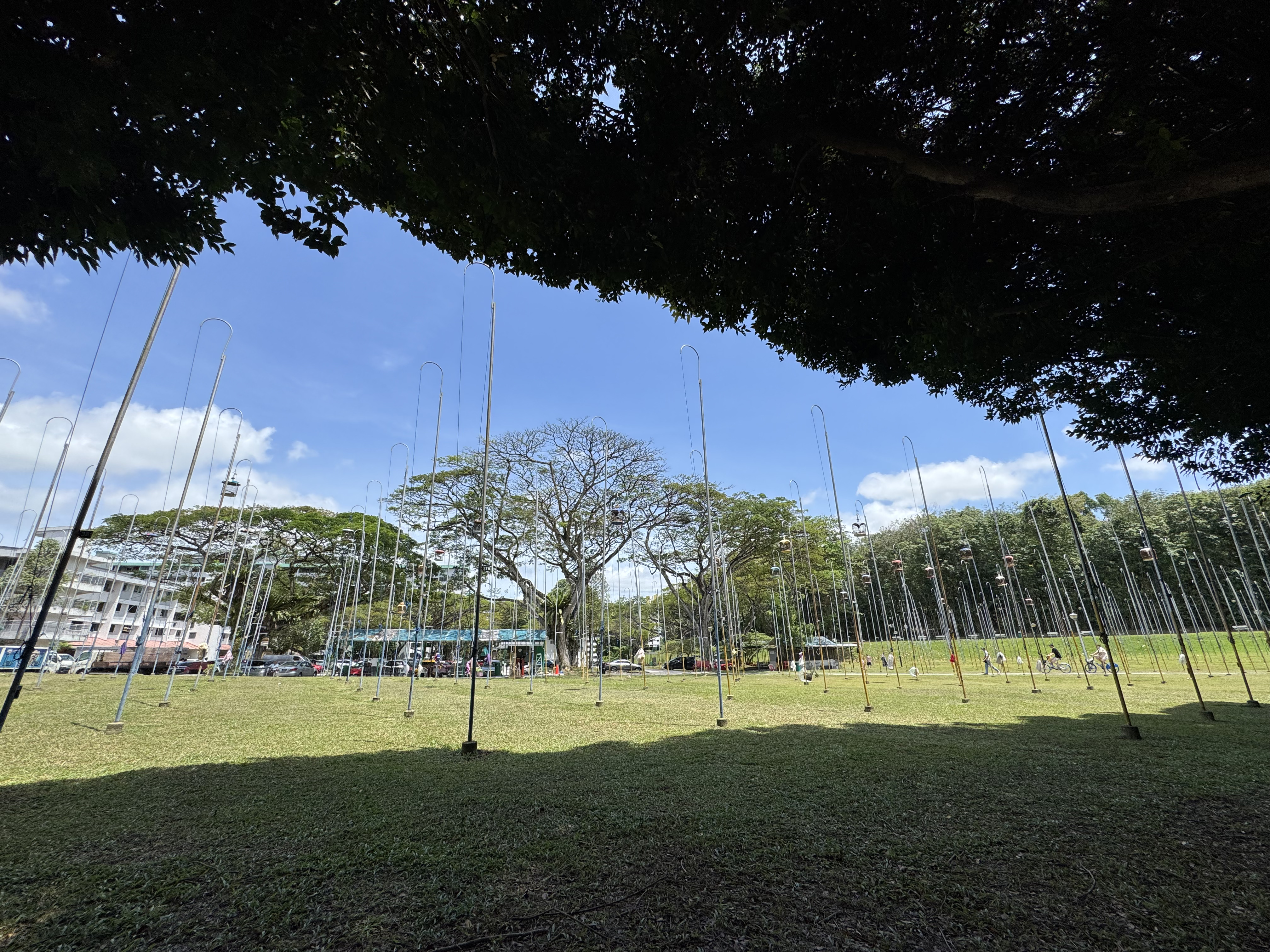 Hinter dem Mayflower Market befindet sich der Kebun Bahru Bird Singing Club. Dort gibt es viele Masten, an denen man Vogelkäfige hochziehen kann. Leute bringen dort ihre (oft sehr teuren) Singvögel mit und lassen sie dort singen, oder sollte ich schreiben: Sie hängen sie dort zum Singen auf. Aber das klingt irgendwie missverständlich ;-) Die Vögel werden nach ein paar Stunden selbstverständlich wieder abgeholt, und damit sie beim Transport nicht unnötig gestresst werden, werden die Käfige verhangen, sobald sie heruntergelassen wurden.